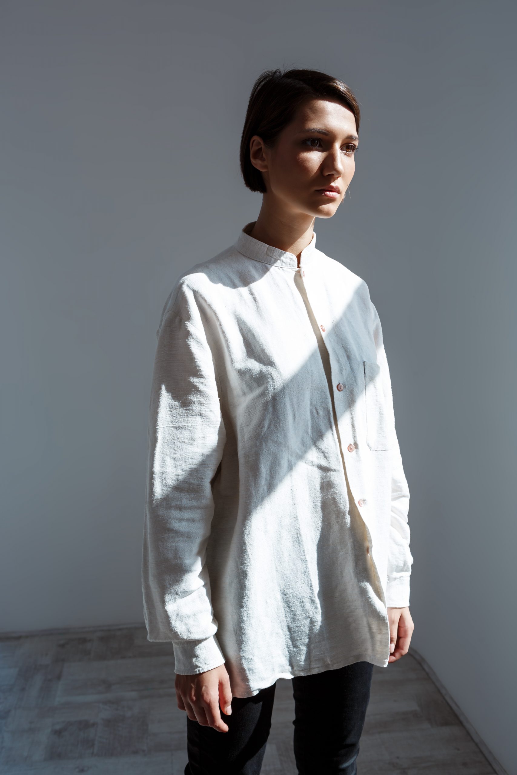 Chemise Léonor – Élégance française et conscience durable. Confectionnée en coton certifié, coupe oversize, col victorien et fronces délicates : un essentiel éthique et raffiné, imaginé pour traverser les saisons avec grâce. Made in France.